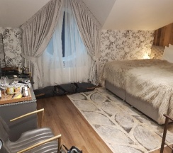 Номер не уютный, холодный, кровать удобная, завтраки и интерьер отличный на первом этаже, бассейн понравился, вид из окна горы вдалеке, а вокруг одни частные огороды