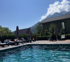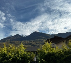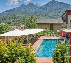 А еще вид на горы, хороший бассейн, сауна, места для отдыха на территории...