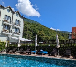 Этот отель - лучшее, что случилось с нами за последнее время и первый, где мне абсолютно понравился номер. Мы отдыхали с 20 на 21 сентября и были приятно удивлены качеством сервиса ( Дарья, спасибо вам огромное за тёплый прием! Наше настроение на весь день было прекрасным из-за вашей улыбки и радушия ), изысканной красотой и продуманностью территории и интерьера отеля. Здесь просто нереально красиво! И много-много приятных мелочей, за которые цепляется глаз. Совершенно потрясающий теплый бассейн🥰 мы просто не могли из него вылезти, настолько нам было приятно и красиво. Хороший небольшой спа комплекс, отдельно хочу отметить соляную комнату, очень красиво сделано. Потрясающий вид на горы с территории, бассейна и номеров. Очень красивый ресторан "Мед" и очень вкусный! Красивые и вкусные завтраки! Милые комплименты от отеля, такие как мед и чай или тканевая маска/патчи в спа комплексе... Это было так приятно! Я от всей души рекомендую этот отель и обязательно скоро вернусь сюда снова!