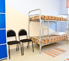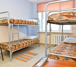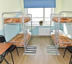 Место в общем 4-х местном номере. Две 2-х ярусные кровати, стол, 4 стула, шкафы для одежды и вещей, зеркало, вешалка для верхней одежды, холодильник, ЖК телевизор.