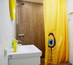 Не понравилось: Немного грязноватые коврики в ванной и старый тюбик дешёвой зубной пасты портят впечатление, потому что в самих комнатах всё ок.