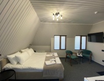 Останавливаюсь в гостинице второй раз. Первый раз был в июле 2024 года, было всё замечательно. Второй раз в начале февраля 2025 года, в номере было очень жарко, вентиль на батарее отсутствует, в доме своя система отопления, но температуру на котле не регулируют. Также хотел отставить дальнее окно открытым на ночь, но там не работает микропроветривание, пришлось открывать его полностью. На втором окне микропроветривание работает, но тогда холодный воздух будет дуть прямо на кровать, можно простыть. За несколько часов проветривания, прохладнее не стало, пришлось оставлять открытыми окна во все дни пребывания и ночью тоже. С детьми тут лучше не останавливаться. Летом было комфортно, включаешь кондиционер и отлично, зимой очень жарко… Мне кажется нужно поставить систему управления котлом и будет лучше
