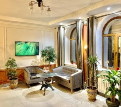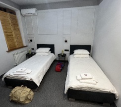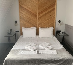 Проживали в номере люкс, комната просторная, большая кровать, пара кресел, шкаф и стол. В номере чисто, каждый день меняли полотенца и выносили мусор. Завтраки на выбор, предлагается заполнить анкету заранее. Из недостатков могу отметить плохую шумоизоляцию, отсутствие нормальных крючков для полотенец в ванной, они постоянно соскальзывали в мусорное ведро под ними, на окнах массивные деревянные ограждения, отодвинуть которые очень сложно, чтобы открыть/закрыть окно. В ванной нет полочки или столешницы, где можно оставить гигиенчиеские принадлежности, приходилось уносить их каждый раз в комнату на стол.