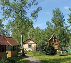 Плюсы: недорого, можно с животными, в том числе крупными собаками, есть возможность арендовать лодку, попариться в бане и поесть в столовой. Готовят очень вкусно, ориентируются на пожелания гостей. В номерах есть всё необходимое: санузел, индукционные плиты, холодильники, набор посуды, чайники. Мы заезжали с ребёнком, нам предоставили кроватку, а в столовой был стульчик для кормления. На территории есть песочница, детские лазали, качели, домик Бабы Яги, кролики, индюк и дикие ëжики, которых можно было встретить в сумерках.
