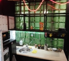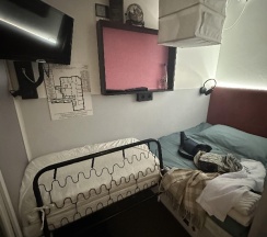 Интерьер 5 звёзд, кухня с кофе 5 звёзд, а вот сама комната на 3 звезды , двум сразу не зайти и не переодеться, блин ну не знаю, мне комната не очень. Радует собственный санузел и всё. Воздуха не хватало спать 🙂