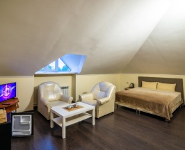 Понравилось: Замечательный номер в мансарде, очень уютный! Мы специально запрашивали именно мансарду (очень любим такие номер), и нас поселили туда, хотя изначально хотели предложить нам номер парой этажей ниже. Вид из окна просто очаровательный - на целое море маленьких домиков с крышами, покрытыми снегом. Волшебно! Номер не огромный, но вполне просторный - в нем есть удобная гостиная зона с комфортабельными креслами.