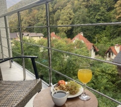 ·Мы жили в стандартном номере с балконом (за это отдельное спасибо) и потрясающим видом на горы. Чисто, уютно, ежедневная уборка. В номере есть всё для комфортного проживания от мыльно-рыльных пренадлежностей, до кастрюли и сковородки. В номере тепло,хорошая шумоизоляция от дороги.
