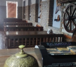 Небольшой мотель. На первом этаже расположено кафе. Есть стоянка для машины и автосервис.