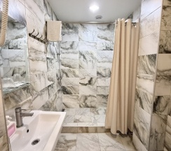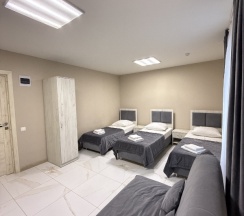 Брали ночь по пути в Дагестан. В гостинице разные ценовые номера и разные условия, мы семья и брали люкс на 4х , номер 11. В номере две комнаты, ремонт свежий, ничего не сломано, кондей , тв , маленькая кухня (без плиты и микроволновки , но это есть на общей кухне отеля) с холодильником и несколько приборов и тарелок. Санузел с душем , где минусом было отсутствие хорошего напора воды и отсутствие крючков или какой то полочки для полотенец ( номер на 4х , соответственно и полотенце все повесить же надо , а куда ? Кидать на унитаз или на пол?))) . Состояние белья , полотенец, одеял, подушек, матрасов - отличное, за это реально спасибо.