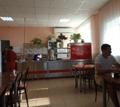 Хорошее место, кормят вкусно и по доступной цене,столовая круглосуточная ешьте когда угодно хоть ночью:) встретили дружелюбно как родных, разве что на улице тьма мошек <:D