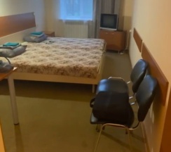 Замечательное место! Душ и туалет в комнате. Чайник имеется. В коредоре холодильник, комната где можно разогреть еду. Кровати огромные две двухспальных кровати у нас были. Чисто, постель свежая. Столовая конечно в другом корпусе, но нас не остановило. Таких цен давно не встречала:пельмени со сметаной, пюре с котлетой, 2кофе, 3хлеба =500₽...сегодня завтрак :2сырника*40₽,2блина с мясом 90₽,кофе55₽=225₽ и самое главное всё вкусно. Магазин тут же есть, круглосуточный. Своя пекарня. Постираться можно, баня имеется. Вообщем всё как надо, тут.