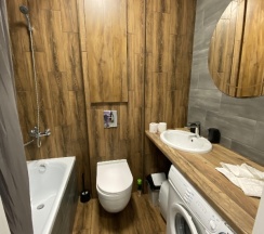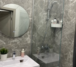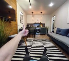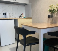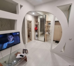 Отличные апартаменты все как на фото, есть все необходимое. Очень чисто и красиво отлично отдохнули семьёй. Заезд и выезд безконтактный, что очень упрощает не нужно кого то ждать! Сервис просто отличный.