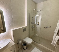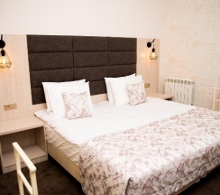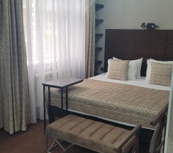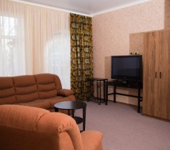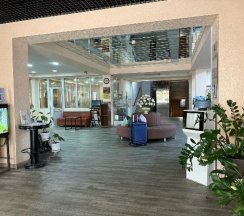 сам номер просторный, светлый, чистый, есть все необходимое (чайник, холодильник, кондиционер,..... даже свои тапки не стали доставать из чемодана). отношение персонала очень порадовало, прилетели рано утром-заселили раньше расчетного времени, улетали ночью-до вечера пользовались номером, по согласованию, на все наши просьбы были отзывчивы и доброжелательны. по питанию были не ограничены в средствах и побывали во многих местах, но столовая, которая в цоколе гостиницы-просто вне конкуренции по цене, времени посещения и качеству блюд, что подтверждается огромным количеством посетителей.