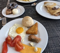 Номер чистый, все необходимое есть, халаты тапочки, гигиен принадлежности, меню подушек, и очень мягкая вода в душе. Завтраки шикарные, все вкусное, на любой вкус как говорится.