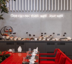В отеле не проживали, были гостями на мероприятии, однако с первых же минут мы были впечатлены. Встречают приветливо с вниманием и улыбкой, очень красивый и неординарный дизайн, что делает пребывание в этом месте более запоминающимся. Эти красные детали интерьера влюбляют в себя и хочется запечатлеть всё) Прекрасные бармены, вкусные десерты и отличный кофе. Всегда приятно в своём городе побыть желанным гостем.
