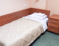 На маленькой площади номера разместилось много мебели: кровати, два стула, три тумбочки, холодильник, шкаф, столик журнальный. Тесновато, но терпимо на один день.