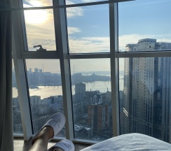 Понравилось бесконтактное заселение,никаких встреч,что очень удобно и современно.При входе,что сразу бросается в глаза это полная чистота,стильный интерьер и прекрасный вид на море,очень мягкая кровать. Есть всё необходимое ,от посуды до приятных мелочей в холодильнике)