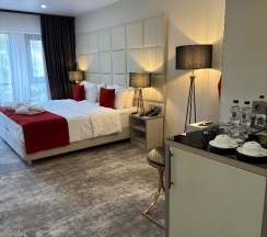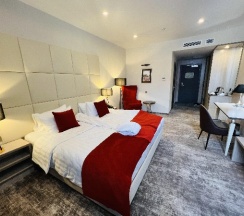 Замечательный отель! Останавливались вдвоем в стандартном номере, все на высшем уровне, в санузле полный набор ванных принадлежностей, хрустящая белая постель, огромная кровать, работающий телевизор. Ночью гробовая тишина, так как район у отеля тихий, не помню когда последний раз так высыпалась. В отеле есть замечательный мини-термальный комплекс, очень расслабились после долгой прогулки по городу. Единственное что не очень понравилось - это включенный завтрак. Мест в ресторане очень мало, еды мало или она холодная. Кофе машина не работала, лимонадов не долили, пришлось пить воду
