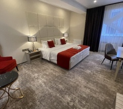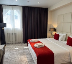 Отмечали свадьбу в ресторане Кухтерин, и тк мы из Кемерово, решили остановиться семьей в этом отели. Жили двое суток. Заказали три номера, все три оказались большими, уютными, стильными и комфортными. Отличные завтраки. Уютная зона с бассейном и сауной. Очень отзывчивый персонал!