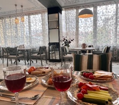 Удобное расположение. Отзывчивый персона. Чистый, просторный номер. В номере все необходимое. Баня комфортная к посещению. Хороший завтрак. Отличный ресторан при отеле.