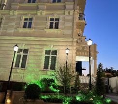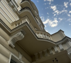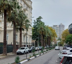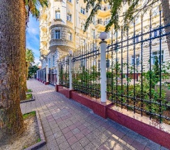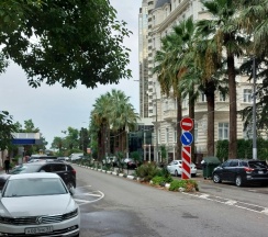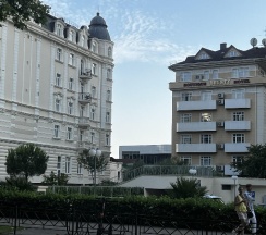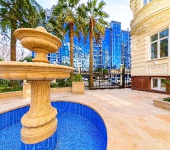 В этом красивом, совершенно не характерном архитектурном стиле для нового Сочи, находится несколько отелей и есть апартаменты от собственников, поэтому лучше бронировать номер на официальном сайте. Месторасположение отеля идеально, рядом красивый Приморский парк, в котором после реконструкции стало гулять ещё приятнее. До моря буквально 100 метров, но нужно учесть рельеф города. Само место ровное, но спуск-подъем по крутым лестницам, зато какой замечательный вид на море! Можно картины писать)