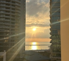 Отличное местоположение, дистанционное заселение, в номере есть всё необходимое, посуда, умывальные принадлежности, халаты, тапочки, зонт, в общем, всё для комфортного отдыха. По требованию предоставляют детские принадлежности, горшок, кроватка, стульчик. Отдыхала одна с ребенком, очень удобно и комфортно провели время в этих апартаментах) 😁 забыла про вид из окна, это вообще любовная любовь. Какие закаты-рассветы…