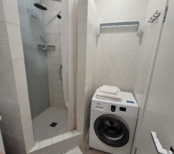 Номер чистый, достаточно всё новое. Мой номер был угловой поэтому было два окна на две стороны. Стиральная машина в коридоре за рольставней на несколько апартаментов, но это по мне так даже плюс. Не мешает звук стирки. Единственный минус, это странно работающий Wi-Fi - периодами тормозил и переподключался.