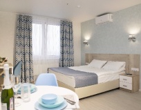 Понравилось: абсолютно всё понравилось, чисто, уютно, номер просторный, кровать большая и очень удобная, выспались от души, всё необходимое в студии имеется, большое спасибо вам за комфорт и обслуживание. Район очень хороший, вся инфраструктура на месте во дворе. Всё супер)))