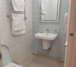 Отличный апарт-отель. Чисто и уютно. Новая техника и мебель. Имеется все необходимое для комфортного проживания: плита, телевизор, кондиционер, холодильник, свч, стиральная машина, чайник, посуда и тд. Санузел в номере. Белоснежные полотенца и тапки, чай, шоколадка и водичка так же присутствуют в номере. Отзывчивый и учтивый персонал. Однозначно рекомендую!