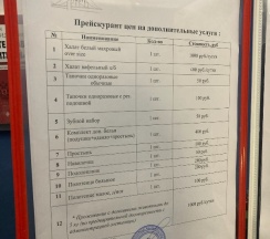 Не понравилось: Тапки платные, кровать ужасно скрипит. Ни о каких халатах речи не идёт. Одеяло тонкое и одно.
