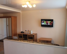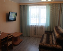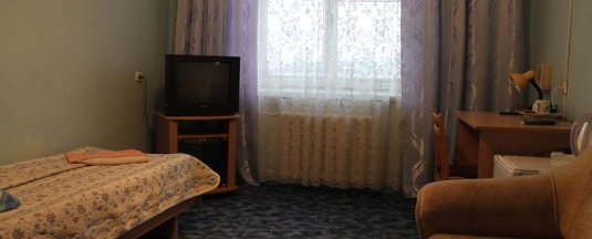 Однокомнатный номер площадью 15 кв. м., туалет, ванна, туалетные принадлежности, телевизор, спутниковые каналы, полотенца, белье.
