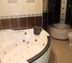 4 комнаты, 160 кв.м, туалет, угловая ванна с гидромассажем , кухня, комната переговоров, комната для отдыха, спальня 1 , спальня 2.