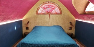На первом этаже расположена кухня-гостиная, на втором этаже располагается спальня и уютная каминная комната, третий этаж медитативный. Подойдет для размещения до 4х гостей.