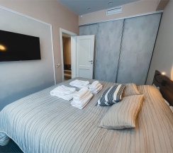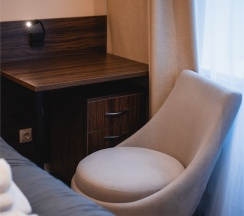 Двухкомнатный номер категории "Люкс" выбирают Гости, которые ценят максимальный комфорт, приезжают надолго, а также те, кто отдыхает всей семьей. Преимущество этого номера не только в его размере, но и в том, что здесь имеется раскладной диван, который также является спальным местом. Широкая двуспальная кровать укомплектована ортопедическим матрасом. Она легко раздвигается, превращаясь в два самостоятельных спальных места, что очень удобно, если Вы путешествуете компанией друзей или с коллегами. Номер оснащен всем необходимым для комфортного отдыха: ванной комнатой c современной душевой кабиной, шкафом для одежды, мини холодильником, кондиционером, сейфом, столом для работы.