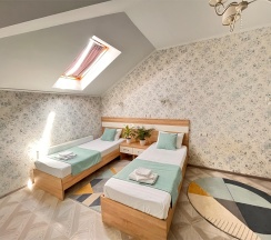 Комфортабельный, номер 25 кв м, номер с 2 односпальными кроватями и раскладным диваном.