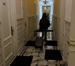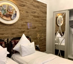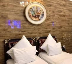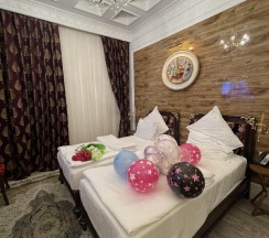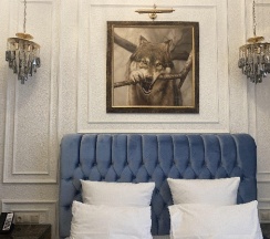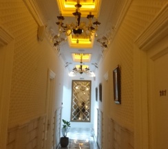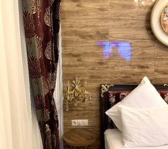 Очень нам понравился отель. Такая красота внутри!!! Чистота!! Высоченные потолки!! В номере потолок метров 4-5! Из минусов: 2 бутылки воды по 0,5 и всё.. потом вода за 100₽. (В других отелях питьевая вода в свободном доступе…). 4 пакетика чая, 4 сахара, 2 кофе, 2 сливки, чайник! Полотенца, халаты, тапочки, ложка для обуви, мыло, жидкое мыло, шампунь, гель для душа, зубные щетки и паста. Кровать удобная. 4 подушки. Но нет покрывала! Освещение хорошее, кондиционер-система. Лифт.