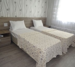 Уютный двухместный номер, с одной двуспальной кроватью или двумя раздельными кроватями (по желанию). В номере - свой санузел, душ, сплит-система, холодильник, телевизор, зеркало, шкаф для вещей, полка для одежды, полка для багажа.