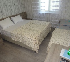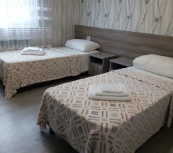Уютный трехместный номер, с одной двуспальной кроватью или двумя раздельными кроватями (по желанию). Третье место - очень удобная раскладная софа, которая позволяет отлично выспаться.