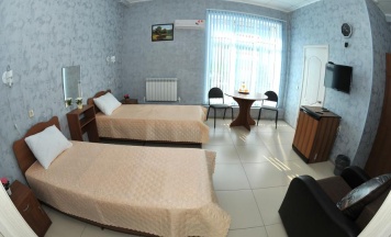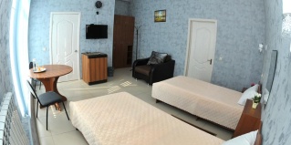 В номере 2 кровати с ортопедическими матрасами, кондиционер, ЖК-телевизор, холодильник, отдельная санкомната (душ, раковина, туалет, фен), 2 зеркала, 2 бра, 2 тумбочки, платяной шкаф, журнальный столик, сплитсистема.