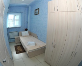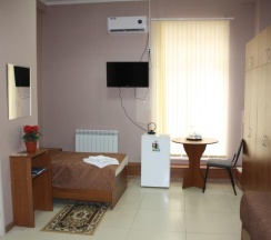 В номере 1 кровать с ортопедическим матрасом, кондиционер, ЖК-телевизор,отдельная санкомната (душ, раковина, туалет, фен)