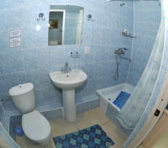 В номере 3 кровати с ортопедическими матрасами, ЖК-телевизор, отдельная санкомната (душ, раковина, туалет, фен), холодильник, 2 зеркала, 3 бра, 3 тумбочки, платяной шкаф, журнальный столик.