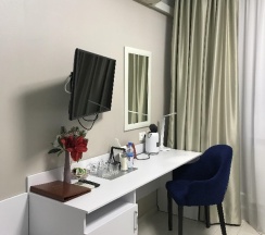 Из хорошего- номер на первом этаже, не пришлось тащить тяжёлый чемодан на второй этаж. Хороший упругий матрас в номере, стол со стулом, можно с ноутбуком поработать. Расположен в самом центре, можно пешком до iMall прогуляться вечером.