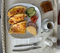 Понравилось: Уютный отель. Постельное идеально чистое, есть халат, тапочки. Завтрак очень хороший, сытный, принесли в номер в ранее указанное время.