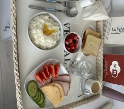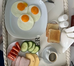 Для отеля без звездности почти 4 тысячи за сутки это дороговато, но окупается тем, что расположен недалеко от центра и в пешей доступности есть магазины, кафе и тд. Очень дружелюбный персонал. Дверь в гостиницу открывается по звонку. Достаточно сильная слышимость, слышно когда звонит телефон на ресепшене или в дверь, либо кто-то поднимается по лестнице или открывает дверь ключом. Сам номер достаточно симпатичный, ремонт как-будто сделан частично: дверные косяки и потолок в ванной будто просто не стали менять и оставили с прошлого ремонта. В номере есть холодильник, чайник, чай, чашки, бутилированная вода, в ванной: зубной набор, шампунь, бальзам, гель для душа, мыло и шапочка, 3 полотенца и халат - это большой плюс. Но сам номер немного пыльный, а когда включаешь кондиционер с него сыпется песок и пыль. За 3 ночи ни разу не сменили полотенце, один раз убрали ванную, протерли стол и перестелили кровать, потом только выносили мусор и убирали поднос после завтрака. Сами завтраки достаточно вкусные и сытные, правда не очень разнообразные, единственный минус, что еду приносят не накрытую, ведь пока её донесут до номера, туда может налететь все что угодно.