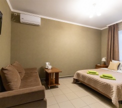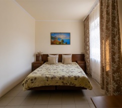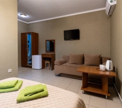 Номер «Стандарт» — оптимальное решение для тех, кто решил отдохнуть в Сукко, не переплачивая за жильё. Помимо привлекательной цены, этот номер обладает всем необходимым. В нём есть все для комфортного отдыха: отдельный санузел, сплит-система, холодильник и телевизор. «Стандарты» бывают с двумя типами кроватей: двумя односпальными или одной двуспальной. Также в номере есть диван, который тоже раскладывается, шкаф и столик. Из окна открывается прекрасный вид на местные красоты. «Стандарт» — сочетание цены и качества. Он подходит для долгого и краткосрочного отдыха, а цены на них остаются приемлимыми даже в сезон