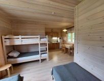 • отдохнуть в деревянном домике с чистой и стильной мебелью