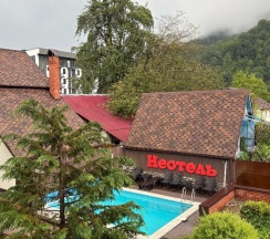 Неотель это отличное место для отдыха в горах. Нас встретила замечательный администратор Анжела, очень гостеприимный человек. На территории имеется бассейн.
