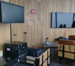- Общие зоны: есть зона отдыха с кожаными диванами, телевизором, играми и кухней с микроволновой печью и кулером. Это отличное место для неформальных встреч или работы вне капсулы.
