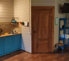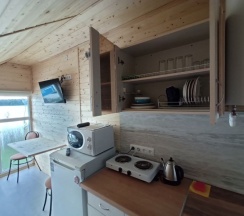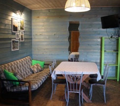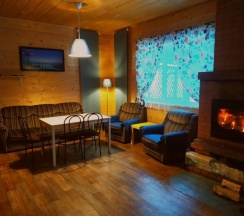 Не понравилось: Усталая мебель и оборудование. Посуда советского периода. Кровати скрипят ужасно. Кран на кухне обшарпаный, течет, душем пользоваться не удобно. Трудно отрегулировать температуру воды. Нет полок для шампуней в душе, нет даже крючка для халата. Нет вешалок или шкафчиков для одежды. Грязное покрывало на диване. При включении теплого пола вырубался свет, а без полов одним камином не натопить, холодно.