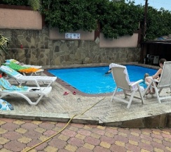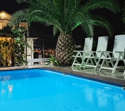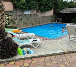 Что касается каксается территории-чистенько,бассейн тоже чистый,подогреваемый кстати.Еда домашняя,порции нормальные,цены отличные.Персонал приветливый ,мы вернемся снова